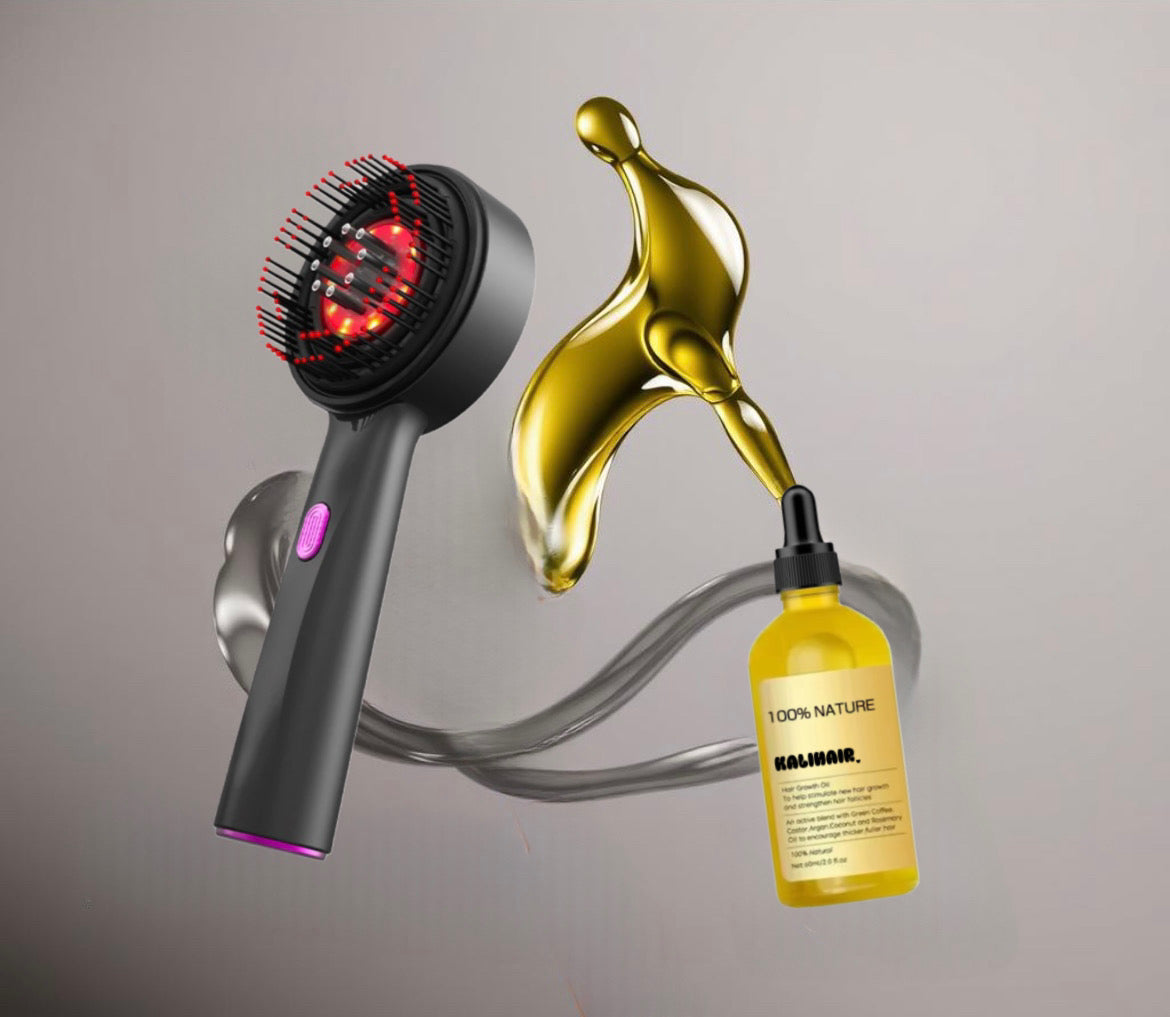 Chez KALIHAIR, nous avons créé une solution simple : une brosse innovante qui masse, démêle et applique nos huiles naturelles, pour une routine capillaire douce, efficace, et pensée pour votre bien-être.